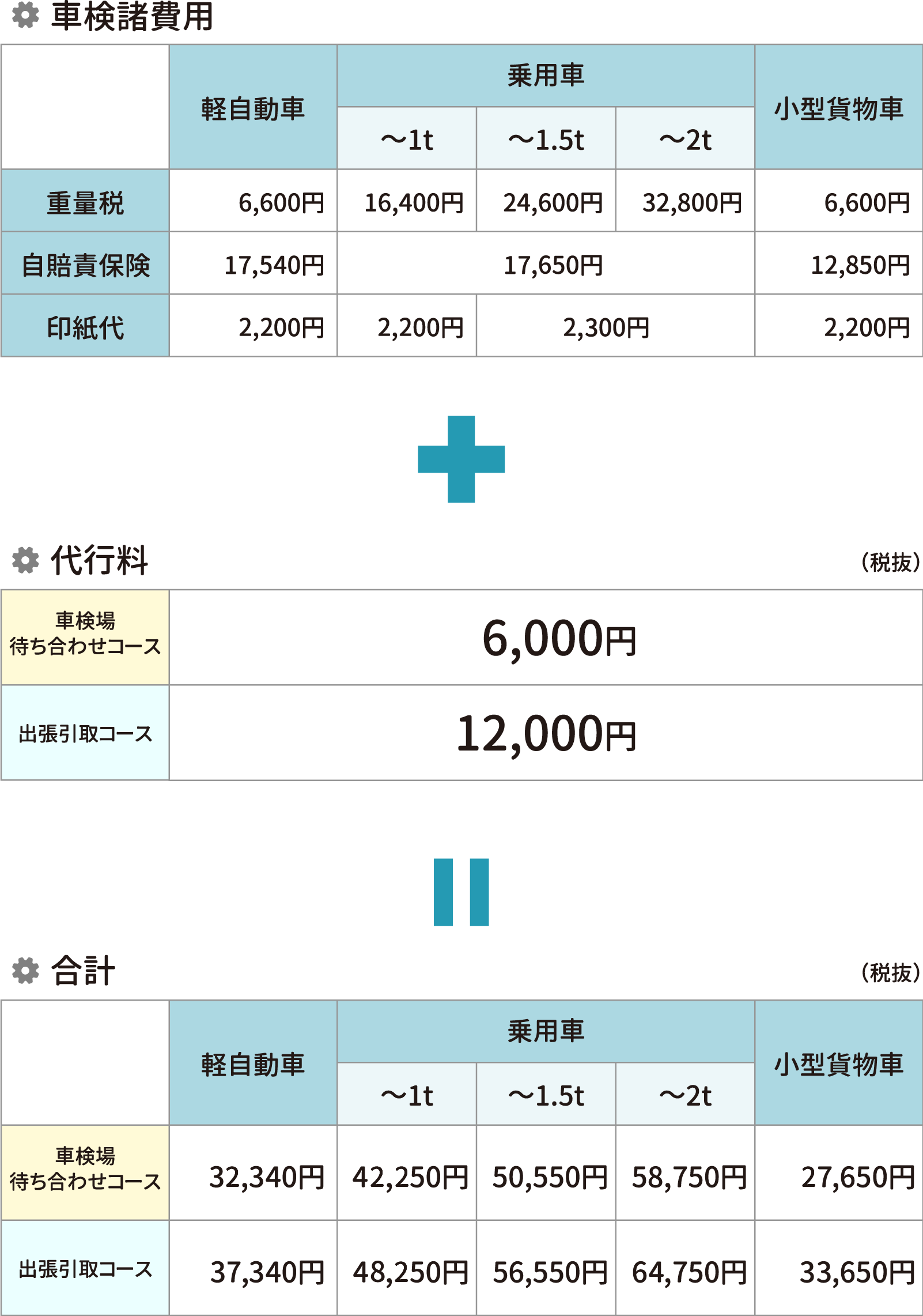 車検諸費用と代行料が掛かります。